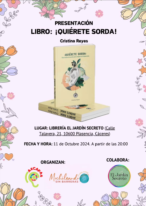 Tenemos el placer de invitaros a la presentación del libro ¡Quiérete Sorda! de la encantadora Cristina Reyes @mochileandosinbarreras