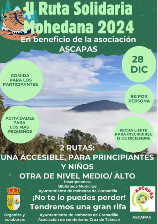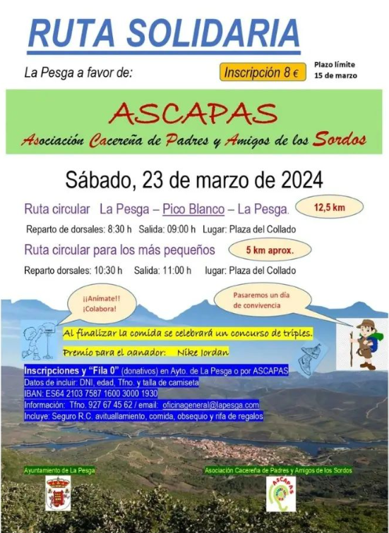📆Ruta solidaria el 23 de marzo en la Pesga, a favor de Ascapas. Organizado en colaboración con Ayuntamiento de la Pesga.