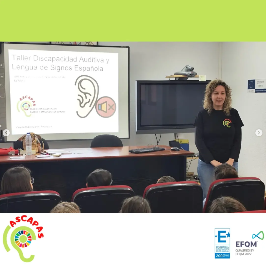 Durante toda la mañana se llevaron a cabo Talleres de Sensibilización y difusión de la Sordera con cada una de las clases de 4° de Educación Primaria del CEIP Campo Arañuelo @colegiocampoaranuelo de la localidad. Además, a lo largo de todo el día estuvimos presentes en la Plaza del Jardincillo con un stand informativo dando visibilidad a nuestro movimiento asociativo 🤗.