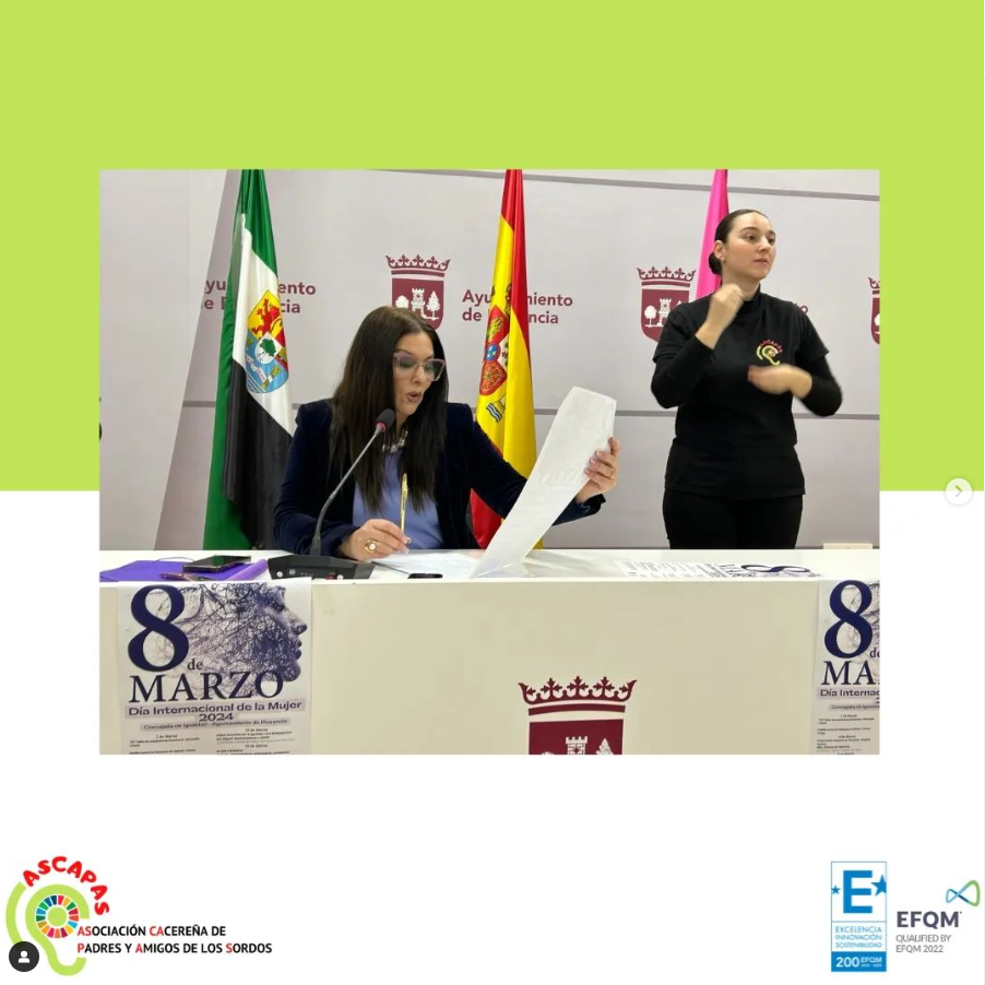 Esta mañana nuestra ILSE Zaira ha interpretado la rueda de prensa que presentaba la marcha del próximo martes 3 de Diciembre con motivo del Día Internacional de las personas con Discapacidad, a la que asistirá ASCAPAS como todos los años para apoyar y dar visibilidad junto con el resto de Asociaciones de Plasencia.